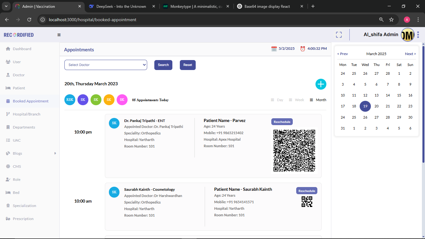Healthcare management system focused on appointment scheduling and encrypted patient records.